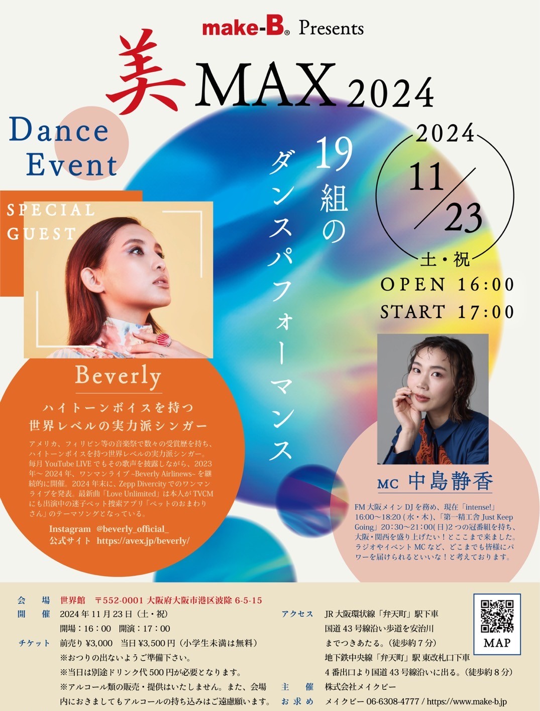 ”make-B presents ダンスイベント美MAX2024”は、おかげ様で大盛況の内に終了致しました ご来場いただいた皆様、誠にありがとうございました! 改めまして、16年間、make-Bを支えてくださった多くのお… 続きを読む 【ご来場のお礼】make-B主催ダンスイベント美MAX2024